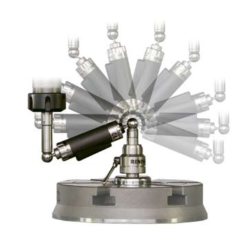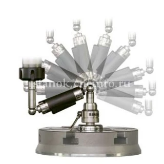 Держатели шариков измененной конструкции (новый центральный держатель и удлинитель магнитной опоры, устанавливаемый в шпинделе) позволяют, пользуясь системой QC20-W, выполнять тесты по “неполной дуге” 220° в плоскостях, проходящих через ось центрального держателя. Это означает, что можно выполнять ballbar-тесты в трех взаимно перпендикулярных плоскостях, не меняя положения центрального держателя, что ускоряет проведение проверки. Анализ результатов этих тестов может теперь выполняться с использованием функции оценки пространственной точности (новая опция, см. раздел, касающийся программного обеспечения); при этом можно быть уверенным в том, что все данные были получены около одной и той же контрольной точки. Выполнение тестов по “неполной дуге” означает упрощение процедуры тестирования по Z-оси (специальные крепления не требуются) и уменьшение перемещения по оси, например, при выполнении теста с радиусом 150 мм перемещение по Z-оси будет на 100 мм меньше.